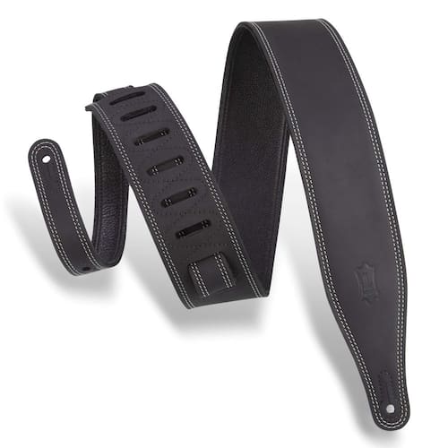 Pulseira de couro para guitarra Levy's Leathers Butter Double Stitch de 2,5 polegadas de largura; série Deluxe — preta (M17BDS-BLK)
