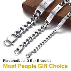 - Pulseira com elos de identificação de aço inoxidável🔥 -- Esta pulseira de identificação permite gravar na etiqueta com qualquer informação. ?Personalização: conteúdo que recomendamos --- nomes, sentimentos, datas, iniciais, citações, coordenadas, números, linhas de músicas, sonhos, palavras com significado, etc