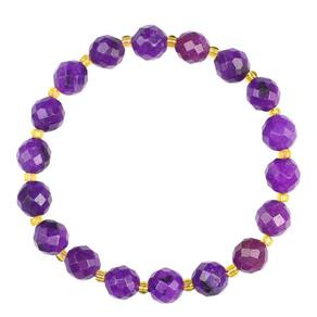 Tamanho: Diâmetro do cordão: 8 mm Material: contas de cristal facetadas de 8 mm — Apresenta miçangas cortadas com precisão que brilham a cada movimento, realçando os tons vibrantes de roxo. Design de inspiração étnica — O estilo tradicional com espaçadores dourados cria uma estética única feita à mão. Apelo unissex — Perfeita para homens e mulheres, esta pulseira oferece uma opção de acessório elegante e neutra em termos de gênero. Elástico para maior conforto — Fácil de usar com um cordão elástico que se encaixa confortavelmente na maioria dos tamanhos de pulso. Ousado e elegante — ideal para uso diário, eventos culturais ou como peça de destaque em um conjunto de pulseiras em camadas.