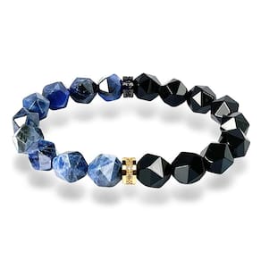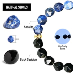 Tamanho: perímetro 16 cm Material: obsidiana natural de obsidiana e veia azul — Feita de obsidiana preta genuína e pedras com estampa azul, cada miçanga apresenta um corte facetado irregular exclusivo para uma aparência ousada e ousada. Miçangas facetadas de 10 mm — Pedras cortadas com precisão fornecem um brilho multidimensional, oferecendo uma textura atraente e uma aparência artesanal premium, adequada para uso diário elegante. Espaçador de strass dourado — acentuado com um anel de strass dourado refinado, adicionando contraste e detalhes enquanto aprimora a estética vintage e sofisticada da pulseira. Design elástico e unissex — Com um perímetro de 16 cm e um cordão elástico, esta pulseira se encaixa confortavelmente na maioria dos tamanhos de pulso, projetada para se adequar tanto a homens quanto a mulheres. Peça versátil — perfeita para quem usa roupas de rua modernas, camadas minimalistas ou pedras espirituais que buscam uma base e equilíbrio com um toque contemporâneo.