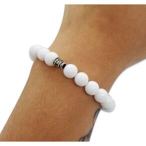 Pulseira de Pedras Naturais Quartzo Branco - Vermelho - Único