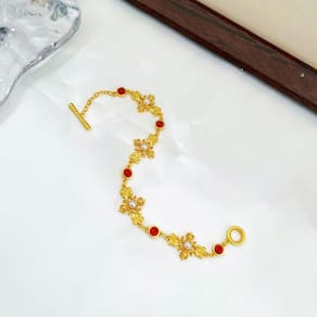 Tamanho: comprimento de 19,5 mm Material: dourado Placer Simbolismo de design de quatro lóbulos — apresenta um motivo tradicional chinês de “ruyi de quatro lóbulos”, representando bênçãos, harmonia e refinamento cultural. Detalhes em pérola e vermelho — embelezados com pérolas artificiais luminosas e miçangas vermelhas profundas para um contraste luxuoso que realça o apelo vintage da pulseira. Artesanato banhado a ouro — A liga dourada intrincadamente esculpida oferece uma aparência radiante e elegante, ideal para realçar roupas diárias ou para ocasiões especiais. Ajuste seguro e ajustável — Projetado com um elegante fecho de alavanca e um laço estendido para uso ajustável, garantindo conforto e estabilidade. Nova fusão de estilo chinês — combina o charme ornamental clássico com elementos modernos da tendência nacional, perfeita para mulheres que buscam acessórios espirituais e modernos.