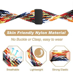- Material: a pulseira Huawei Watch Fit 2 é feita de material de nylon de alta qualidade. É leve e macia, confortável e não irritante, o que pode evitar irritações na pele. A elegante pulseira elástica respirável é adequada para qualquer ocasião. Leve e lavável, muito confortável para exercícios e uso diário.