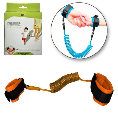 Pulseira de segurança infantil anti-perda - guia de pulso - 1,5m Nos dias de hoje, temos que prestar atenção em várias coisas ao mesmo tempo, principalmente quando se tem mais de uma criança para tomar conta ao mesmo tempo. Em situações que fogem da nossa rotina do dia a dia como em viagens. Com o cordão de segurança para pulso, você terá a criança sempre próxima de você sem o risco de se perder. Essencial para a segurança ao viajar, em aeroportos, shopping center, etc. Pode evitar que o bebê acidentalmente atravesse ou corra para locais não seguros como ruas e avenidas. Possui duas partes para serem presas nos pulsos tanto da criança quanto do adulto com proteção de tecido para não machucar e fechamento com fitas aderentes. A extensão é feita em aço com formato de espiral e proteção de plástico para não machucar em contato com a criança. Dando total flexibilidade e mobilidade para a criança enquanto estiver em uso. Idade aplicável: 1 à 8 anos. Material principal: fio de aço inoxidável super resistente; pano de algodão; plástico expandível; Máximo comprimento: 1,5m. Tamanho aproximado da pulseira 1,5m Tamanho aproximado da caixa a:18xl:14xp:4cm Peso aproximado: 100g Tipo de produto: pulseira de seguranca anti-perda infantil mb toys Cor: laranja / azul de acordo com disponibilidade Composição: plástico, tecido adesivo, tecido com espuma