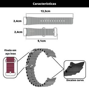 Qual o modelo do encaixe R: o encaixe dessa pulseira é curvo, encaixando perfeitamente ao relógio sem deixar espaço Quais são os modelos compatíveis Compatível com a linha completa do galaxy watch6