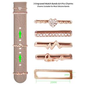 Samsung Galaxy Watch 7/6/5/4/3, Active 2, Gear Sport, Gear S2 e smartwatches com terminais de 20mmORATYFAN Pulseiras para Samsung Galaxy Watch 7/6/5/4 de 40 mm e 44 mm com pingentes, pulseira de silicone feminina com gravação de flores de 20 mm para Galaxy Watch 5 Pro/Galaxy Watch 3/Galaxy Active