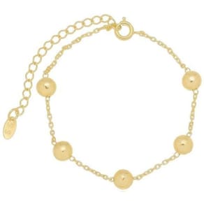 Pulseira e Brinco Bola Banhado a Ouro 18k 8954 Conjunto: pulseira e brinco com bola 6mm; pulseira medindo 16cm mais 5cm de extensor regulável com 5 bolas.