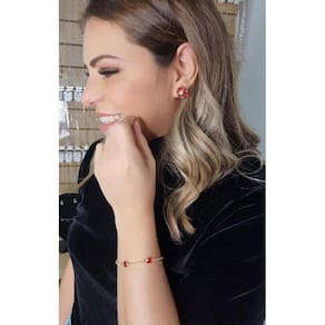 Pulseira e Brinco Flor Banhado a Ouro 18k 8734 Conjunto: pulseira pedrinhas em resina 6mm vermelha e brinco flor petálas em resina Banhado a Ouro 18k Banho Hipoalergênico SEM NÍQUEL um dos maiores causadores de alergia Altíssimo padrão de qualidade Garantia de 1 ano no banho Marca: Mariah Store Semijoias