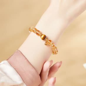Tamanho: Diâmetro do cordão 8 mm Peso: 18 g Material: cristal de alta qualidade e olho de tigre — Feita com contas de cristal amarelo de 8 mm e uma pedra central de olho de tigre, esta pulseira combina clareza e profundidade, perfeita para aumentar a energia espiritual e o foco. Pingente de cabaça de prata S925 — acentuado com um pingente em forma de cabaça gravado com o caractere chinês “” (bênção), simbolizando boa sorte e proteção na cultura tradicional. Estética minimalista e espiritual — Uma fusão refinada de espiritualidade e estilo, projetada com linhas simples e charme simbólico, esta pulseira combina com roupas modernas e tradicionais. Design leve e confortável — pesando apenas 18 g, a pulseira oferece um ajuste confortável e seguro para uso diário, ao mesmo tempo em que apresenta uma aparência premium e sofisticada. Novas joias de estilo chinês — perfeitas para quem aprecia a estética oriental minimalista e acessórios simbólicos, adequadas para meditação, uso casual ou ocasiões espirituais especiais.