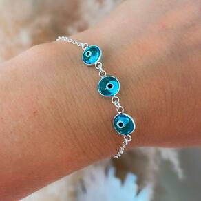 Pulseira Elos Com Olho Grego Prata 925 Pulseira Elos com Olho Grego Prata 925 18cm - Pulseira Elos com Olho Grego Prata 925 Adicione proteção e estilo ao seu visual com esta deslumbrante pulseira de Olho Grego, confeccionada em cristal murano de alta qualidade. A peça é feita em prata 925, garantindo durabilidade e sofisticação, ideal para quem aprecia acessórios delicados e cheios de significado.