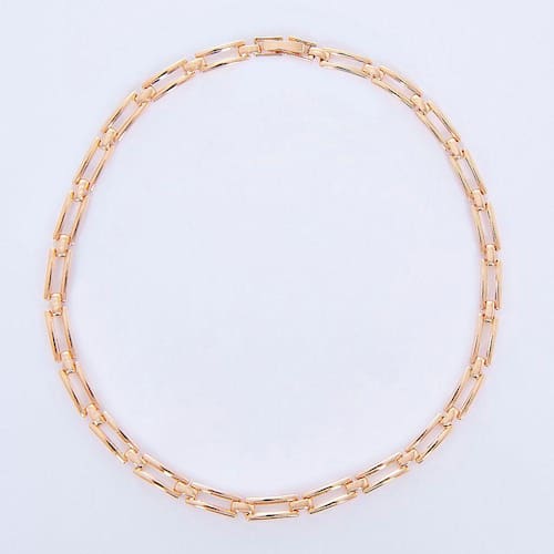 Pulseira moderna em elos quadrados é banhada a ouro é delicada e luxuosa, te deixa em destaque em qualquer situação.