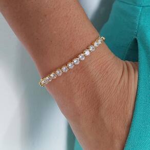 Pulseira elos redondos com faixa de zircônia Essa pulseira é composta por mini elos redondos e uma faixa de zircônia que da todo um charme único para essa peça. Um acessório delicado, mas que não passa desapercebido nos lugares, seu brilho chama atenção e atrai olhares admirados das pessoas a sua volta. Ideal para a mulher que ama fazer mix e arrasar no look, pois o seu design permite combinações maravilhosas. Use e abuse da sua criatividade com essa pulseira. Além de lindíssima ela é muito pratica para o dia a dia, pois fica linda em visuais mais formais e também em uma composição mais informal, o importante é que estará linda em qualquer ocasião que escolher usá-la. Compre agora e continue arrasando em seus look's