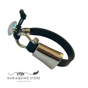 Pulseira Emma em couro sintético na cor preta, simplesmente elegante.