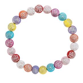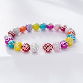 Pulseira Erê Coloridas Rosas Em Relevo Prateadas 10 Mm