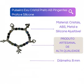 Pulseira Exú Umbanda Candomblé - Selecione o Modelo A Pulseira Exú Umbanda Candomblé da Bialluz, possui pingentes e cristais de alta qualidade feitos de forma artesanal com muito carinho. Com tamanho único, mas muito versátil por conta do silicone, é perfeita para qualquer pessoa. Cheia de boas energias e carregada de fé nossa pulseira emanará muita paz em sua vida! Escolha um dos modelos disponíveis na opção COR do próprio anúncio. Enviamos a sua pulseira em até 24 horas após a confirmação de pagamento! Dimensões aproximadas: Tamanho dos cristais: 8 mm Peso: 30 gramas Cuidados com a sua pulseira: 1 - Evite o contato das peças com produtos químicos e de limpeza em geral, é indicado que você retire sua peça ao manusear produtos como cremes, shampoo, detergentes e perfumes. 2 - O perfume se for aplicado diretamente na peça, pode acabar com o tempo danificando por conta da presença do álcool em sua composição. 3 - Para limpar utilize pano úmido com água. Depois seque bem com pano macio. Por ser uma peça feita manualmente podem ocorrer pequenas variações nas cores ou tamanhos. Caso tenha alguma dúvida nos mande mensagem que respondemos rapidinho para te ajudar da melhor forma possível! Marca: META ATACADO