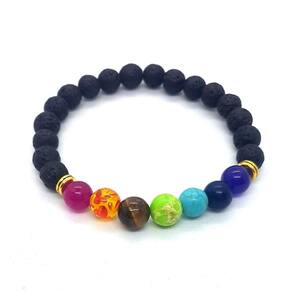 Linda pulseira feminina com as pedras dos 7 chakras e pedras vulcânicas.
