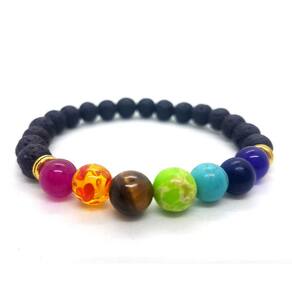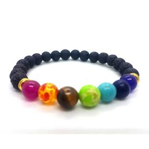 Pulseira Feminina 7 Chakras com Pedra Vulcânica Ajustável - Único