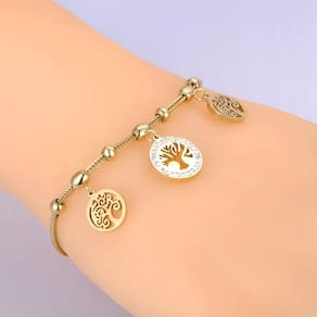 Uma pulseira com berloques de árvore da vida e um berloque central com pedras de zircônia em volta da árvore pode ser uma peça muito bonita e simbólica. A árvore da vida representa crescimento, força e conexão com a natureza, enquanto as pedras de zircônia adicionam um toque de brilho e elegância.