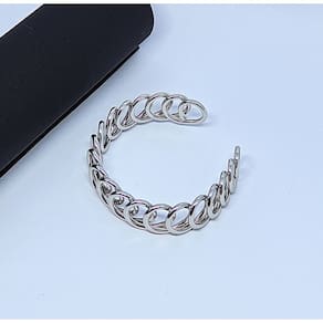 - Tipo de Pulseiras: Geométricas vazado - Material: Metal com Folheado a Ouro - Antialérgico sm - Brilho de qualidade - Não risca facilmente - Largura do Colar: 4 mm - Forma da Pulseira Geométrica - Estilo: Punk - Ajustável: Sim encaixe no Pulso nao havendo extensor do tamanho - Cor; Prata, Dourado