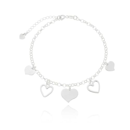 Pulseira Feminina Com Coração Pulseira Feminina Com Coração 19cm - Encante-se com a delicadeza da Pulseira em Prata 925 com pingentes de corações pendurados, perfeita para adicionar um charme especial ao seu look. Com design elegante e detalhado, esta pulseira feminina destaca a beleza dos corações delicadamente posicionados, simbolizando amor e ternura. Feita com prata de alta qualidade, a peça é resistente e hipoalergênica, garantindo conforto e durabilidade para o uso diário ou ocasiões especiais. Ideal para mulheres que apreciam joias finas e versáteis, esta pulseira complementa qualquer estilo com um toque sutil de romance e sofisticação. Adicione esta peça encantadora ao seu porta-joias e transforme seu visual com elegância!