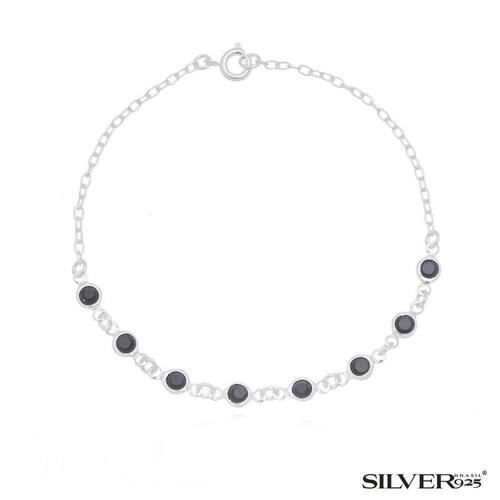 Pulseira feminina com zircônias na cor preta redonda em prata lei 925Acompanha:- pulseira- certificado de garantia e legitimidade- embalagemDescrição:- pulseira feminina com zircônias na cor preta redonda em prata 925- peso 1.4g- tamanho: 19 cm- origem: brasil- composição: prata 925 Garantia do fabricante Garantia contra defeitos de fabricação, reposição de pedras em caso de queda espontânea e certificação da prata 925.A garantia não cobre quebras, amassados, ralados e uso excessivo.A garantia se anula em caso de mau uso, entende-se como mau uso exposição a produtos químicos, altas temperaturas e qualquer situação fora do uso normal.Produto de metal, composto por 92,5% de prata e 7,5% de ligas nobres.Garantia legal de 1 ano
