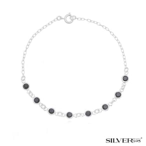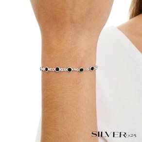 Descrição: - pulseira feminina com zircônias na cor preta redonda em prata 925 - peso 1.4g - tamanho: 19 cm - origem: brasil - composição: prata 925