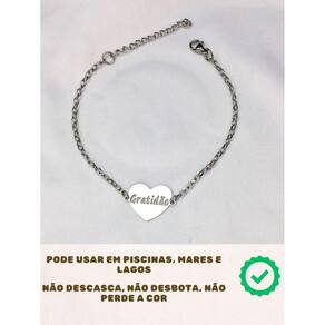Pulseira feminina delicada prata gratidão minimalista aço inox prova d'água Pulseira feminina delicada prata gratidão minimalista aço inox prova d'água Pulseira modelo grumet em aço inox prata antialérgico a prova d'água. Com 2mm de espessura e 22cm de comprimento, é perfeito para pessoas de personalidade que amam estar na moda. Pulseira para mulheres. Não perde a cor, não fica preto, não causa alergia. ====================================== Fotos reais do produto na galeria Detalhes técnicos: Marca: visujóias Modelo: pulseira grumet Espessura corrente: 2mm Comprimento: 22cm Incluso: 1 unidade Material: aço inox Código do produto sku : 3344 : 6 meses. Todas as peças possuem tratamento antialérgico =================================================== P:minha compra é segura R:toda compra que é feita aqui está em ambiente seguro, isso significa que se caso ocorra algum imprevisto faremos o estorno. R: sim. P: produto é a prova d'água R: sim, pode usar em piscinas e praias que não escurece. P: tem R: sim, todos os nossos produtos tem de 6 meses, contra defeitos de fabricação. Todas as informações de cuidados são enviados junto com o produto. P: posta em quanto tempo P: posso trocar se não servir R: sim, enviamos nosso contato junto com o produto para orientação sobre troca. P: posso devolver se não gostar R: sim, caso não goste do produto é só entrar em contato conosco que iremos orientá-lo como efetuar a devolução. Dúvidas Pergunte à vontade, estamos aqui. ficaremos felizes em responder rapidamente. Aguardamos sua compra e estamos ao seu dispor : Marca: Não Informado