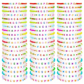 Dica: Leia atentamente a descrição antes de comprar. se tiver algum problema Observações: Medição manual, considere pequenos erros no tamanho. A cor pode existir uma pequena diferença devido a diferentes telas. Especificações: Material: plástico. Cor: colorido Tamanho: 15 cm. - Ótimo custo-benefício: você receberá 60 pulseiras de amizade, em quantidade e variedade suficientes para atender às suas necessidades diárias, em cores interessantes e com excelente acabamento - Presentes fofos e delicados: estas pulseiras coloridas são o acessório perfeito para festas de aniversário, reuniões, Natal e são presentes fofos para você, entes queridos, amigos, etc - O tamanho certo: com uma circunferência de cerca de 6,7 polegadas (17 cm), esta pulseira se encaixa no tamanho de pulso da maioria das pessoas, o que a torna o presente perfeito para amigos que amam pulseiras - O material é excelente: estas contas são contas de arroz, acrílico ou argila, à prova d'água, resistentes ao desbotamento, lisas, leves, coloridas, delicadas e duráveis, podem ser usadas sozinhas, empilhadas ou combinadas com outras pulseiras - A combinação de elementos é rica: o design das contas da pulseira tem uma variedade de padrões, formas de amor, formas de flores e várias formas de frutas, aparência adorável e fresca, muito adequada para usar, cheia de vitalidade