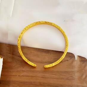 Tamanho: Largura 4,2 mm Peso: 14 g Material: inscrições da sorte esculpidas à mão em ouro — A pulseira apresenta frases auspiciosas finamente esculpidas, adicionando profundidade espiritual e cultural ao seu valor estético. Design antigo autêntico — Inspirada na ourivesaria tradicional vietnamita, a pulseira apresenta um visual texturizado e artesanal com acabamento em ouro arenoso de alta qualidade. Estrutura de manguito aberta — Fácil de usar e ajustar, o design aberto oferece um ajuste seguro e confortável para vários tamanhos de pulso. Largura elegante e atraente — Com uma largura de 4,2 mm e 14 g de peso, ele oferece uma presença ousada e refinada no pulso. Uso diário ou cerimonial versátil — ideal para celebrações culturais, eventos espirituais ou uso diário que adote uma tradição significativa e um estilo elevado.