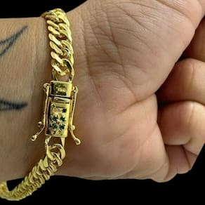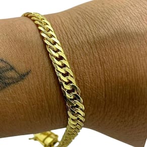 Pulseira Grumet 7mm Trevo Sorte Banhado a Ouro 18K Detalhes do Produto: Material: ligas metálicas de alta qualidade, especialmente tratadas para fixação e absorção do ouro, com acabamento em verniz protetor. Aparência: visual idêntico ao ouro maciço. Produção: artesanal, com atenção meticulosa aos detalhes. Banho: 10 camadas espessas de ouro 18k, finalizadas com verniz antialérgico . Elos: soldados varia conforme o modelo . Pedras: zircônias brilhantes cravejadas quando aplicável . Tamanhos Disponíveis: Cordões Masculinos: 70cm padrão e 60cm sob consulta/Pedido Via Chat . Cordões Femininos: 50cm padrão e 45cm sob consulta/Pedido Via Chat . Pulseiras: 21cm padrão ; tamanhos de 18cm a 23cm sob consulta/Pedido Via Chat. Pingentes: conforme imagens; consulte para mais detalhes via chat. Espessuras Recomendadas para Cordões / Pingentes: P: 1mm a 4mm M: 4mm a 8mm G: 6mm a 13mm Gg: 12mm a 18mm Incluso na Compra: Saquinho de organza para armazenamento seguro. Caixa elegante, perfeita para presente. Cupom de desconto para a próxima compra. Flyer com outros produtos da coleção. Carta de agradecimento personalizada. Adesivo da marca ToJoia18k. Informações Adicionais: : 6 meses termos acompanham o produto . Devolução: 7 dias para devolução sem questionamentos. Envio: despacho em até 24 horas úteis após confirmação do pagamento. Cuidados com a Peça: Evite contato com produtos químicos; aguarde o perfume secar antes de usar. Evite contato com shampoo, condicionadores e suor excessivo. Armazene em local seco, preferencialmente no saquinho de organza fornecido. Uso no mar e piscina é permitido; lave com água corrente e sabão neutro após. Por que Escolher a ToJoia18k Semi-joias luxuosas que combinam estilo, qualidade e sofisticação. Banho espesso de ouro 18k, garantindo brilho duradouro e acabamento impecável. Design exclusivo e produção artesanal, perfeitos para qualquer ocasião. Materiais premium que asseguram durabilidade. Ao escolher uma semi-joia ToJoia18k, você investe em qualidade, elegância e uma experiência única. Aguardamos sua compra Observação: pode ocorrer variação no fecho raramente . Imagens reais, sem edição. Qualquer dúvida, estamos à disposição para esclarecimentos. Marca: Não Informado Ean: 7896596421434