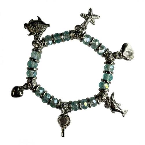 Pulseira Iemanja Azul 6 Penduricalhos Cristal e Silicone