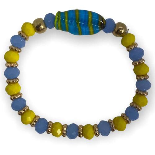 Pulseira Logunede Búzios Amarelo e Azul Claro Cristal e Silicone