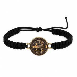 Pulseira Medalha São Bento Dupla Face Preto 1,5 cm Ajustável