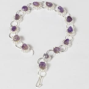 Adicione delicadeza e espiritualidade ao seu estilo com a Pulseira Margarida Pedra Ametista.Beleza e serenidade em cada pétala.Compre agora!