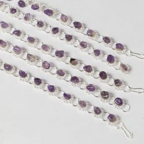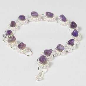 Pulseira Margarida com Ametista Pedra Rolada Colada Em cima ótimo Brilho, pedra genuina, mineral autentico. Pulseira com arco em forma de margarida com Pedra Colada no Topo Metal Prateado.