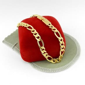 Pulseira Masculina 22cm 6mm Largura Folheada Ouro PL104 Pulseira Masculina 22cm 6mm 12Gr - Fecho Quadrado - Marca: Wnbijouterias - Modelo: 3x1 - Largura: 6mm - Modelo Fecho: Quadrado - Peso: 12Gr - Acompanha Embalagem/Porta Jóia - SKU Vendedor: PL104 Descrição Técnica: - Corrente com banho super resistente. - Processo de Folheação em 3 Camadas de Ouro 18k=(750) - Não descasca, não perde a cor, qualidade garantida - Grande tempo de durabilidade. - Acompanha Embalagem/Porta Jóia - Todas as Fotos são Reais do Produto Acompanha: Certificado de garantia OBS: Garantia apenas para descascamento do banho da jóia. A garantia não cobre defeitos de mau uso, aranhões ou quebra de partes da jóia. Contra Indicações: - Não usar creme, perfume, protetor solar e outros cosméticos por cima da jóia. - Evitar banho de mar (Devido a oxidação da água Salgada) - Evitar banho de piscina (Devido a oxidação do Cloro e outros produtos)