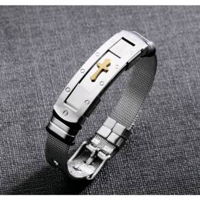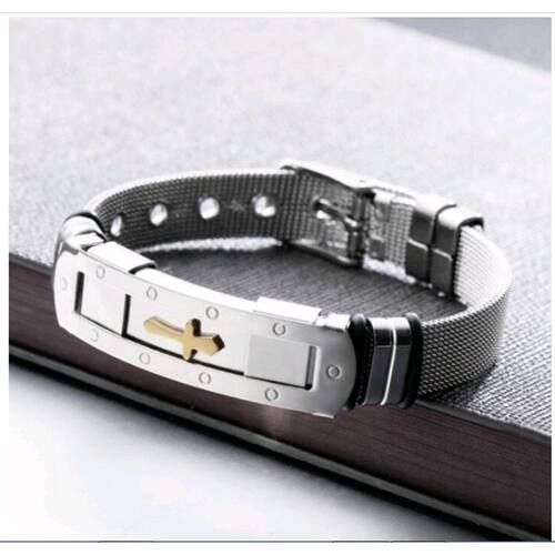 Linda Pulseira Masculina Bracelete em Malha de aço inoxidável 316L mais resistente à corrosão e antialérgico Com fino e cuidadoso acabamento, fruto de um design diferenciado, proporciona conforto ao usar, além de ser uma peça de destaque e extremamente versátil ao possibilitar combinações em diversas ocasiões. O detalhe com a cruz dourada traz o bom gosto na medida para o acabamento da peça. Possui ajuste como uma pulseira de relógio, não precisa cortar furos de 16,5cm a 21cm Largura da pulseira: 1 cm Tamanho total da pulseira: 23 cm Peso: 26 gramas Ean: 7890001059724