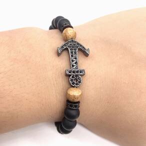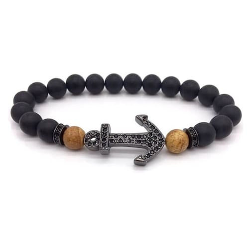 Pulseira Masculina Pedra Ágata Matte Com Âncora Preta Características Pulseira Pedra Ágata Matte Com Âncora Preta Material: A pulseira é fabricada em pedras ágata matte de 8mm, entremeios e âncora de metal com cristais de zircônia. presas por um elástico de silicone muito resistente. Tamanho: Tamanho: 20cm Ideal para ser Utilizado em punhos de 18cm folgada, com caimento no punho a 20cm justa, sem caimento no punho .