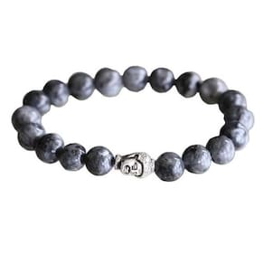 Pulseira masculina pedra labradorite com Buda prata Perfeita para homens que gostam de combinar vários estilos, a Pulseira de Pedra Labradorite e Buda Prata é ótima para ser utilizada com outras pulseiras, fazendo o estilo pulseirismo. Seu design traz boas vibrações com um detalhe budista, além de dar elegância a simplicidade. Características Pulseira de pedra labradorite com Buda Material: A pulseira é fabricada em pedras de labradorite de 10mm, com pingente Buda em aço na cor prata, presos em um resistente elástico de silicone. Cor: disponível na cor cinza, com detalhes em prata. Tamanho: Tamanho: 21cm Ideal para ser Utilizado em punhos de 18cm folgada, com caimento no punho a 20cm justa, sem caimento no punho . Marca: Não Informado