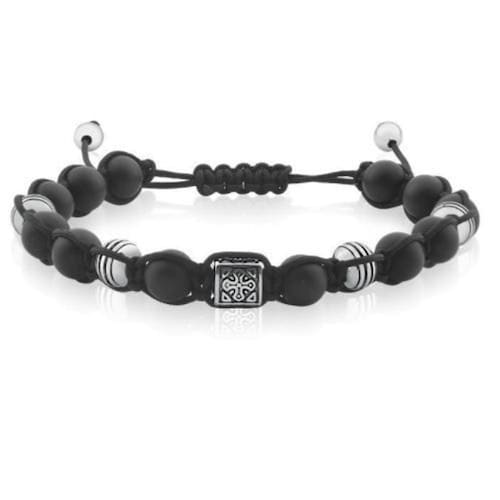 Pulseira Masculina Pedras Negras e Lisas com Stoppers Redondos em Aço. Use sozinho para um visual Discreto. Use Acessórios Masculinos e Dê um up no seu visual