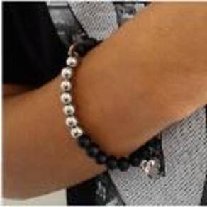 Pulseira Masculina Pedra Vulcânica, Pingente Caveira em Aço e Cordão de Silicone ajustando facilmente ao braço. Use Acessórios Masculinos e dê um up no Visual