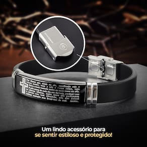 A pulseira masculina Pai Nosso em aço inoxidável é o acessório perfeito para completar o seu visual com estilo e elegância. Feita em silicone de alta qualidade, possui uma placa gravada a laser com a oração do Pai Nosso na cor dourada, garantindo um acabamento impecável. Além disso, o fecho em trava de aço inoxidável garante segurança e durabilidade.