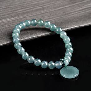 Tamanho: diâmetro do cordão 6,5 mm, pingente 15 x 2,5 mm Peso: 16 g Material: jadeíte natural de grau A — Feito de jadeíta genuína, cada miçanga apresenta tons de azul gelado polido com brilho translúcido e textura natural. Pingente redondo simbólico — O medalhão redondo minimalista de 15 mm representa paz e harmonia, perfeito para homens e mulheres. Confortável e leve — Com um peso de apenas 16 g, esta pulseira oferece uma elegância sutil e fácil de usar para uso diário e formal. Miçangas uniformemente combinadas — miçangas de 6,5 mm são selecionadas manualmente para consistência e beleza, proporcionando um ritmo visual harmonioso. Design unissex — Adequado para todos os gêneros e estilos de moda, ideal para quem aprecia simbolismo cultural e joias de jade feitas à mão.