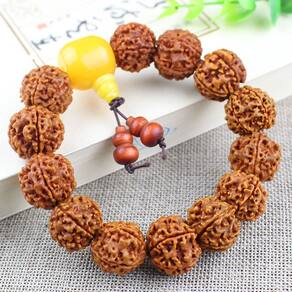 Tamanho: Diâmetro do talão 18 mm, 14 peças Material: Bodhizi 1. Grânulos de Bodhi autênticos feitos com sementes de Bodhizi naturais de 18 mm de cinco faces, cada grânulo apresenta sulcos profundos e texturas tradicionais que refletem o artesanato nepalês. 2. Grânulos focais decorativos incluídos, aprimorados com um exclusivo cordão decorativo amarelo e detalhes em cabaça de madeira, adicionando charme e equilíbrio à estética geral. 3. Ideal para meditação e oração Projetada para uso espiritual, como canto e concentração, esta pulseira oferece base e apoio durante práticas conscientes. 4. Confortável para pulsos masculinos Com 14 contas grandes e cordão elástico, esta pulseira se encaixa na maioria dos tamanhos de pulso masculinos de forma segura e confortável. 5. Estilo tradicional feito à mão Cada pulseira é amarrada à mão e polida, combinando tradição rústica com materiais naturais para refletir paz e força interiores.