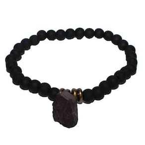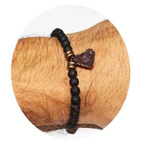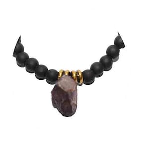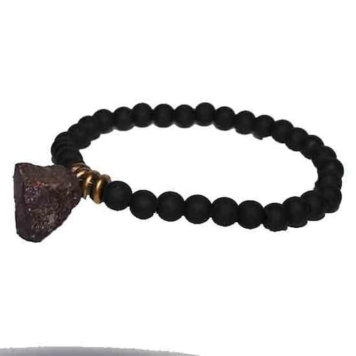 Contém Uma Pulseira Nlux Masculina com Purpurita de verdade (100% Natural), miçangas pretas e metal estiloso em contato com a Purpurita.