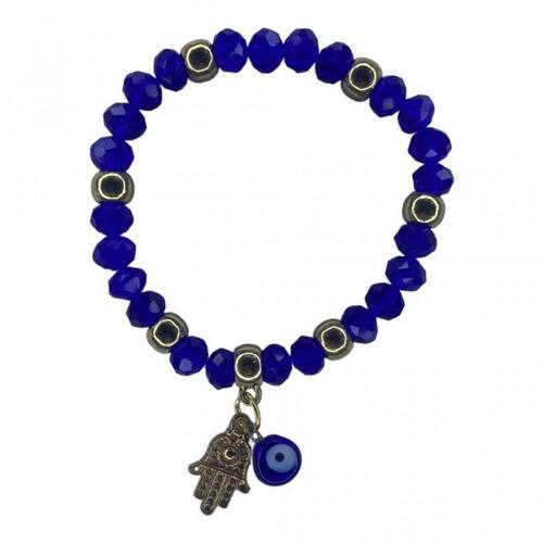 Pulseira Olho Grego Proteção Cor: Azul Mão de Deus Pulseira Olho Grego Azul Cristal 8 mm para Proteção