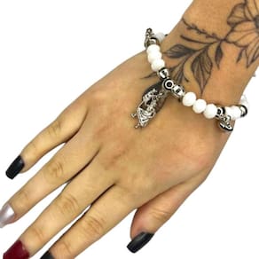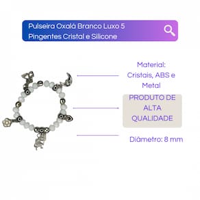 Pulseira Oxalá Branco Luxo 5 Pingentes Cristal e Silicone