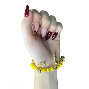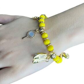 Pulseira oxum amarelo gema penduricalhos cristal e silicone