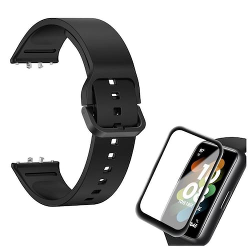Pulseira em silicone com ajuste personalizável e película protetora 3D para tela. Inclui fecho seguro e material flexível para conforto prolongado. Compatível com Samsung Galaxy Fit 3.Tipo