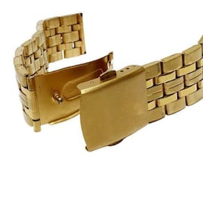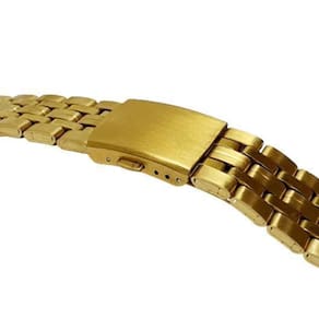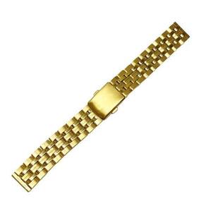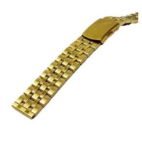 Pulseira para Relógio 24mm-Reta Aço Dourada Pulseira Relógio Aço 24mm Terminal Reto Comprimento Total: 18cm Terminal e Fecho Com Pusher Modelo Asa Aço com brilho no meio e escovado O pacote inclui: